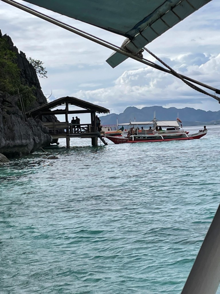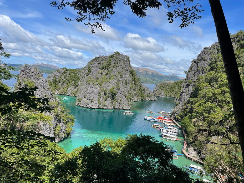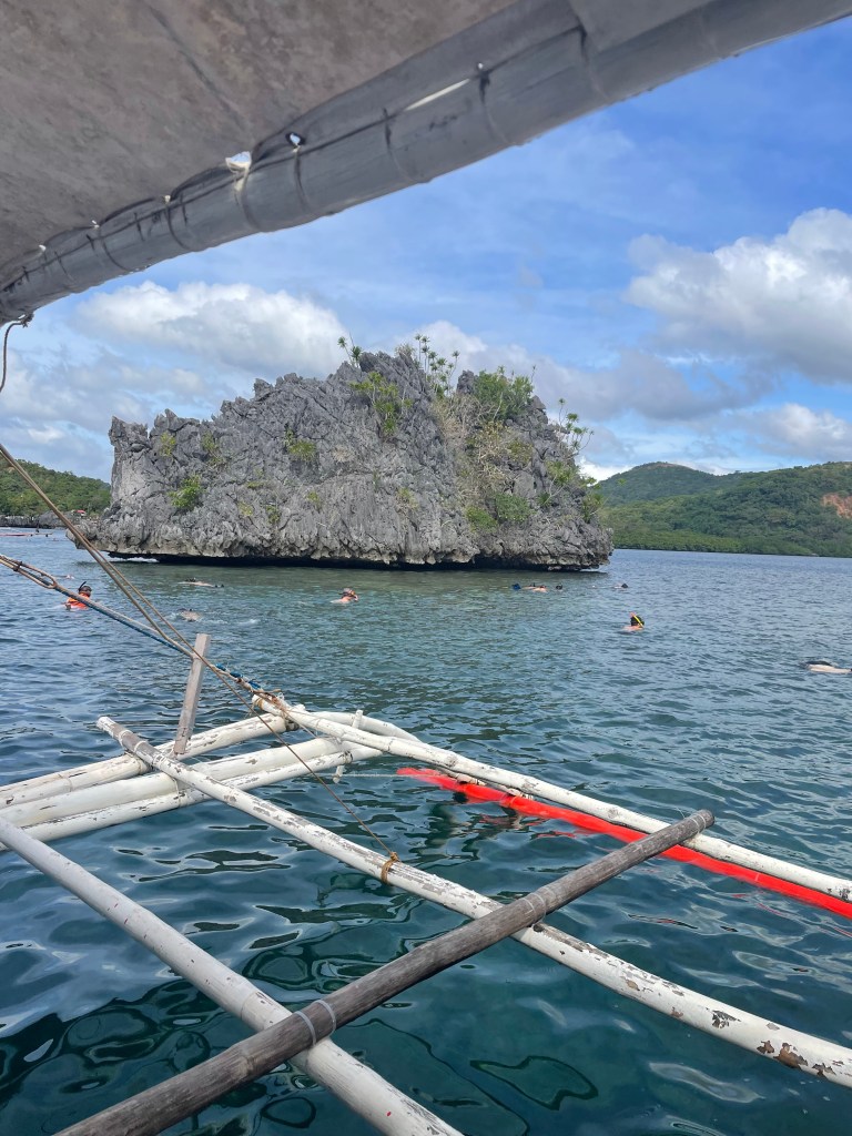 The reason we’d added Coron to our itinerary was to check out Kayangan Lake. So, the following morning, we headed out on a full-day tour, which included the lake as the second stop on the itinerary. We joined the tour at Coron Harbour where there were traditional boats as far as the eye could see, bobbing about on the water. Ready to board those boats were hordes of tourists. And swarming around the tourists were multitudes of locals selling their wares. We didn’t buy anything, but we did rent a kayak, which was carried down to our boat. We were the only Australians aboard which wasn’t surprising because we hadn’t seen any other Australians, either in Coron or Manila (our first stop in the Philippines). The tourists we’d come across were mostly European.