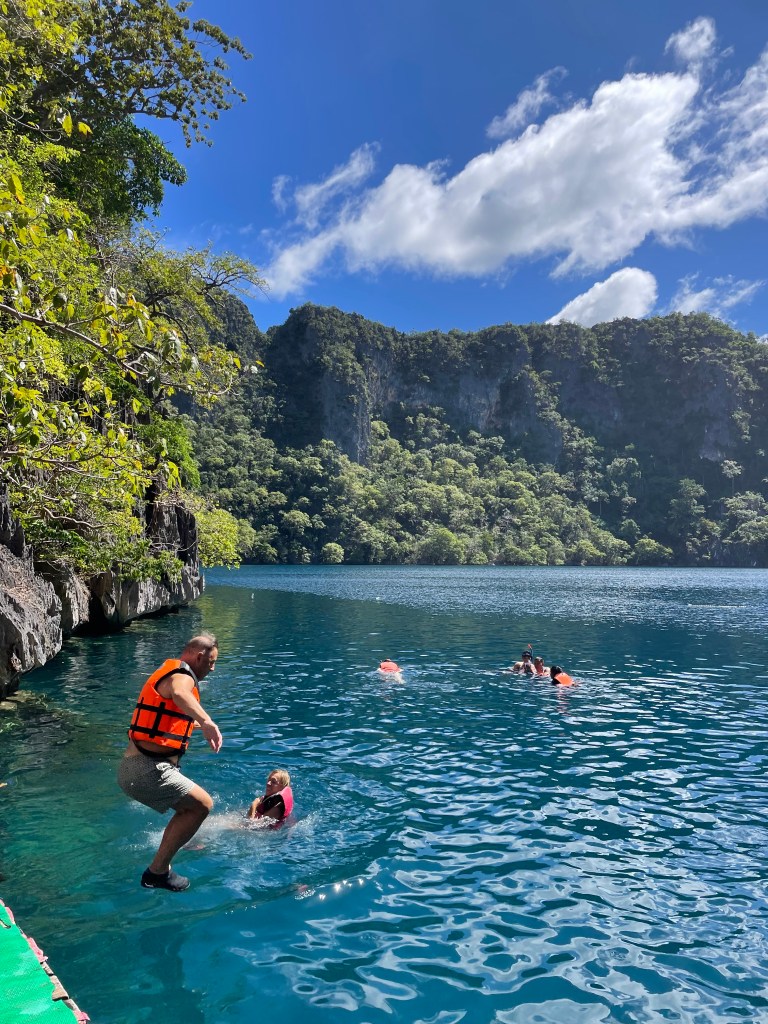 After exploring the bay and the coral, it was back on the boat and off to the spot we wanted to see—Kayangan Lake. Known as the cleanest lake in the Philippines, it’s worth the 367 steps to get there. Surrounded by mountains, the turquoise water the perfect temperature, it was an amazing spot to bob around in. And bob was all we could do because life jackets are mandatory at the lake and have been since two tourists drowned in 2017. We’d forgotten how hard it is to try and swim with a life jacket on. You can’t really, which was frustrating because we wanted to explore the lake not just the area where we’d jumped in (with all the other tourists).