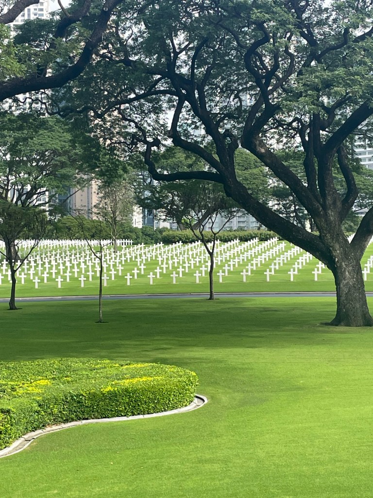 At our designated pick-up time, we met Victor, our guide for the day. A lovely man who was skilled at navigating through the hectic Manila traffic. The first stop on our tour was the America Manila War Memorial. Built to honour those who died in the defense of, then later, the liberation of the Philippines from the Japanese during World War II. It was a sombre experience but one I’m glad we did, a reminder of the sacrifices of so many, and so many of them so young. As you look out across the site, it’s hard not to be reflective as you take in the 16,000 crosses. I don’t know how many tourists visit, but in our minds, after being there, it’s a must-do.