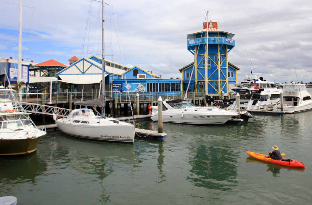 Mooloolaba, with its beach, coastal walk, restaurants, bars and cafes, the Wharf precinct, and canals, all of which were within walking distance from the unit we’d booked for our four-day stay. And I didn’t know until I saw a sign when we got there that it’s recently been voted one of the ten best beaches in the South Pacific. No wonder you can’t get a car park.