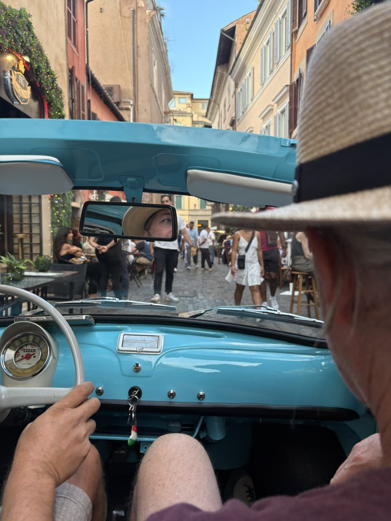We were almost at the meeting point when we first spotted the car – a 1966 convertible blue Fiat, our transport for our sunset and evening tour of Rome. We hadn’t even hopped in the car when we noticed the attention it was attracting, something that continued until later in the evening when we said goodbye to the tiny car and our driver, Ery.